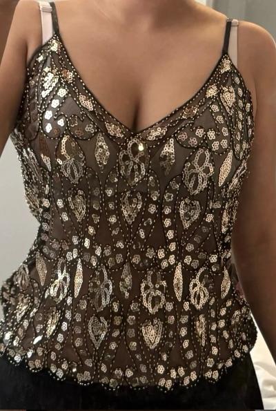 “Finally found a sequin top that fits well without feeling tight or scratchy. The mesh is slightly sheer in a really classy way, and the beadwork has this gorgeous shine. I’ve already worn it to two events and it’s become my new favourite piece.”